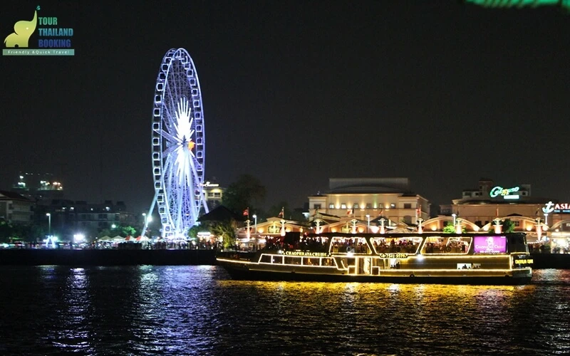 กรุงเทพ เรือเจ้าพระยาครุยส์; ผู้คนมากหมาย; กินอาหารบนเรือ; ห้องรับปีระทานอาหาร; พืนไม้; ความเป็นไทย;