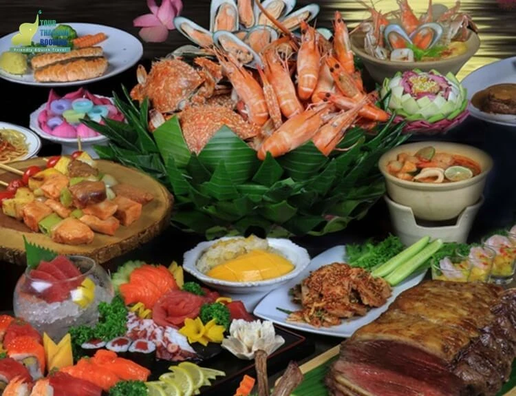 อาหารนานาชนิดทั้ง กุ้ง หอย ปู ปลา และ หมึก ในแบบอาหารไทย จีน ญี่ปุ่น และยุโรป รวมทั้งผลไม้ ของหวาน ไอศกรีมให้เลือกอร่อยได้อย่างจุใจกับ บุฟเฟ่ต์ตึกใบหยก สกาย ในบรรยากาศที่สบายๆ เป็นกันเอง สามารถชมวิวได้โดยรอบได้ทั่วทั้งกรุงเทพฯโรงแรมใบหยก สกาย โรงแรมที่มีความสูงที่สุดในประเทศไทย ตั้งอยู่ใจกลางเมืองกรุงเทพฯ ใกล้แหล่งช็อปปิ้งชื่อดังต่างๆ อาทิ เซ็นทรัลเวิลด์พลาซ่า, เกษรพลาซ่า, สยามสแควร์ และสยามพารากอน อีกทั้งยังใกล้กับสถานีรถไฟฟ้า และยังติดกับ Airport rail link ซึ่งสามารถเดินทางถึงสุวรรณภูมิได้ในเวลาเพียง 30 นาที