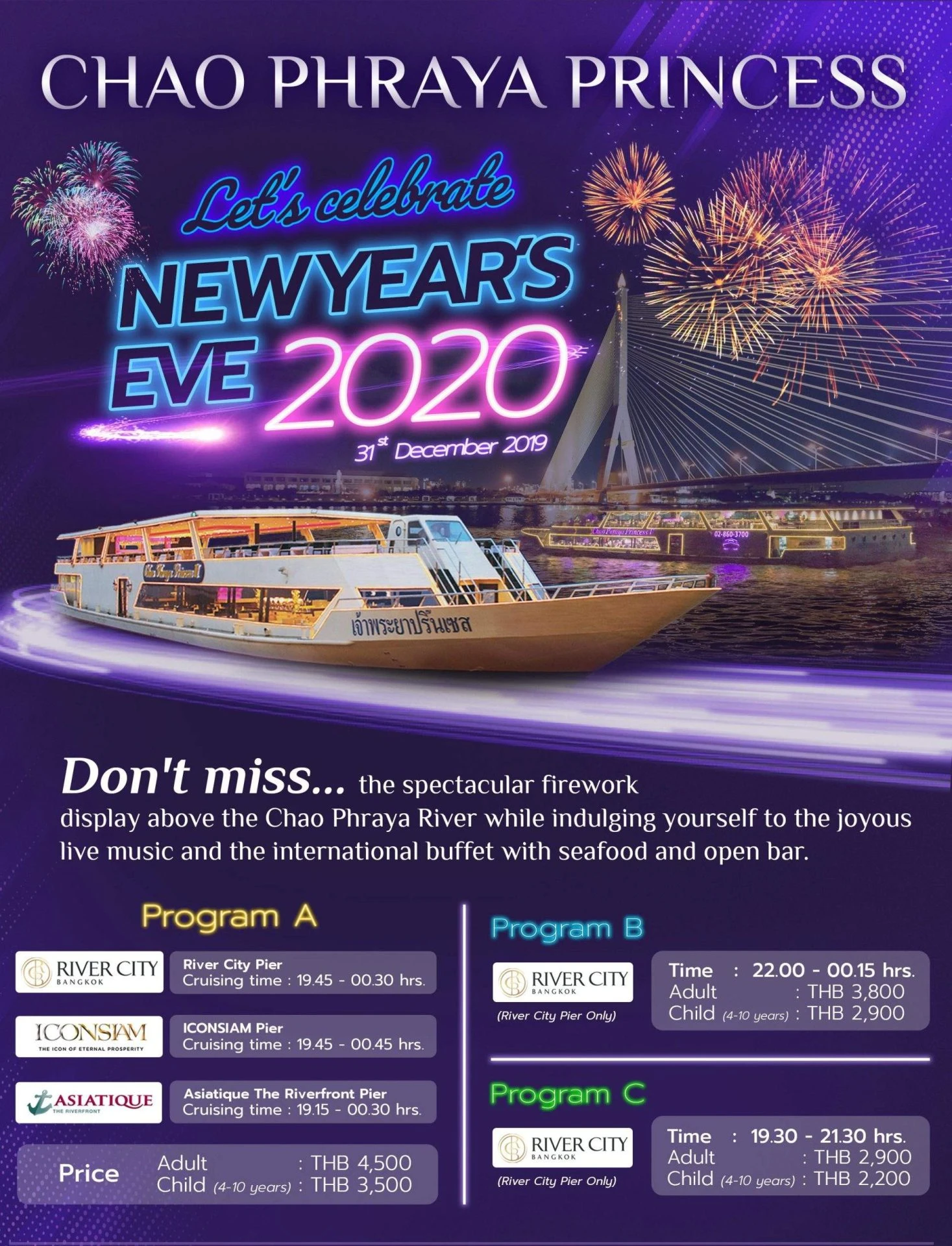 โปรแกรมการล่องเรือเทศกาลปีใหม่ ปี 2020 เรือเจ้าพระยาปริ้นเซส
