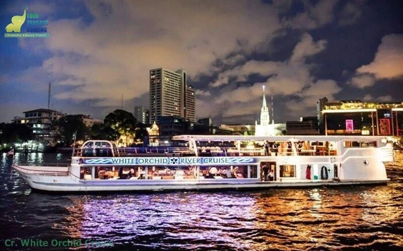 ชนิดเรือ : กลางคืน ทุกวัน | สถานที่ เช็คอิน : ท่าเรือศูนย์การค้าริเวอร์ซิตี้ ท่าที่ 1 สี่พระยา | การจอดรถ : สามารถจอดรถได้ที่อาคารจอดรถของทางศูนย์การค้าริเวอร์ซิตี้ ฟรี 2 ชม.แรก โดยนำบัตรจอดรถมาประทับตราที่เคาน์เตอร์ของเรือไวท์ ออร์คิด ริเวอร์ครูซส์