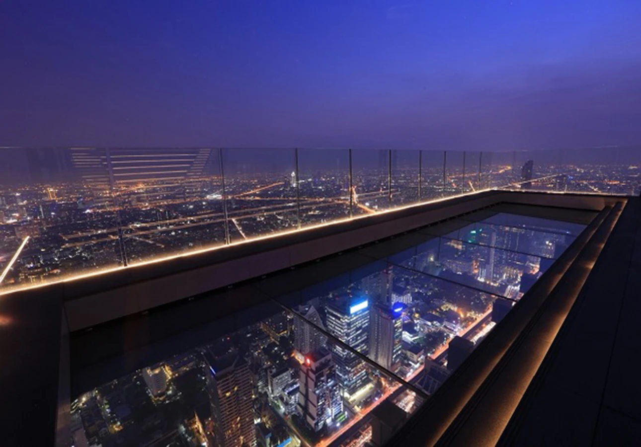 สัมผัสทัศนียภาพมุมกว้าง 360 องศา พิสูจน์ความสูงกับพื้นกระจกใสลอยฟ้า (Glass Tray) ที่สูงถึง 310 เมตร นอกจากนี้ยังมีรูฟท็อป (Rooftop Bar) เรียกได้ว่าสูงที่สุดในประเทศไทย ที่มีเครื่องดื่มและค็อกเทลสูตรพิเศษจำหน่าย