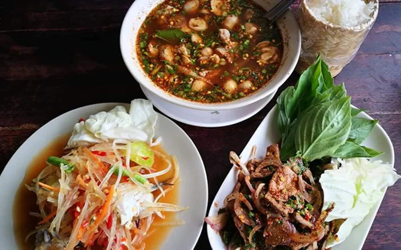 ไม่ว่าจะทานกับข้าวเหนียวร้อนๆ ขนมจีน หรือข้าวสวย ก็ได้หมด แถมยังมีอาหารเคียงต่างๆ ที่คนนิยมสั่งมาทานคู่กัน เช่น ลาบ น้ำตก ไก่ย่าง ต้มแซบ ฯลฯ โอ้ย!!! ซี๊ดปากจนต้องเช็ดน้ำลาย