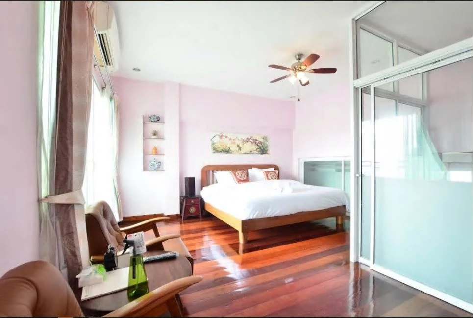 พิกัดซอยอินทามระ 8 ถ.สุทธิสารวินิจฉัย เขตพญาไท กทม. ใกล้ตลาดจตุจักร และห่างจาก MRT เพียง 15 นาทีเท่านั้น เป็นที่พักในรูปแบบของบ้านทาวน์เฮาส์ทั้งหลัง ไม่อึดอัด ด้านหน้ามีสวนหย่อมเล็กๆ ชวนผ่อนคลาย ด้านบนมีระเบียง ให้คุณนั่งรับลมได้อย่างสบายๆ ภายในสะอาด ได้กลิ่นอายความเป็นลูกหลานชาวจีนได้อย่างอบอุ่น ได้อารมณ์เสมือนคุณได้อยู่บ้านของตัวเอง พร้อมสิ่งอำนวยความสะดวกครบครัน เช่นเตารีด ห้องครัว โต๊ะทำงาน อ่างอาบน้ำ อินเตอร์เน็ต ที่จอดรถฟรี มีห้องนอน 3 ห้อง ไล่ขนาดกันตั้งแต่ Size S M L ตกแต่งในโทนสีสบายตา น่าพักสุดๆ คุ้มค่าในราคาเริ่มต้นเพียง 2,xxx บาทต่อคืน เจ้าของที่พักก็น่ารัก มีความเป็นกันเอง เอาใจใส่ลูกค้าเป็นอย่างดี จนได้รับการโหวดใน Airbnb ว่าเป็นเจ้าของที่พักดีเด่นกันเลยทีเดียวค่ะ