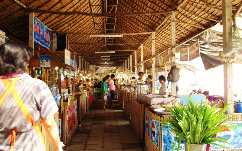 คุณจะได้สัมผัสกับบรรยากาศสบายๆ กลางเมืองกรุง ด้วยของกินและอาหารพื้นบ้าน ราคาไม่แพง หลังคามุงตับจาก เน้นการใช้วัสดุจากธรรมชาติ ให้อารมณ์เหมือนเดินช็อปปิ้งในยุคสมัยเก่า บางร้านมีการนำพืชผักผลไม้ มาใส่ชะลอม ดูน่ารัก เหมาะกับการเดินเล่นรับลมเย็นๆ กันค่ะ