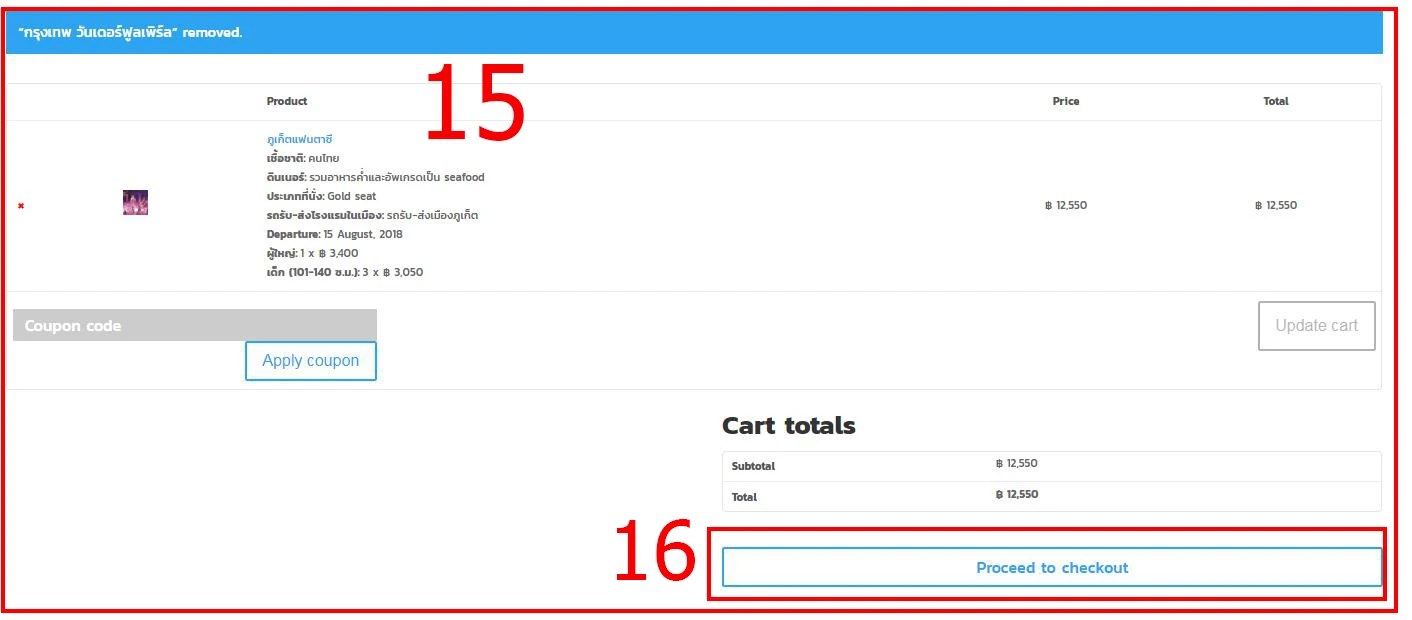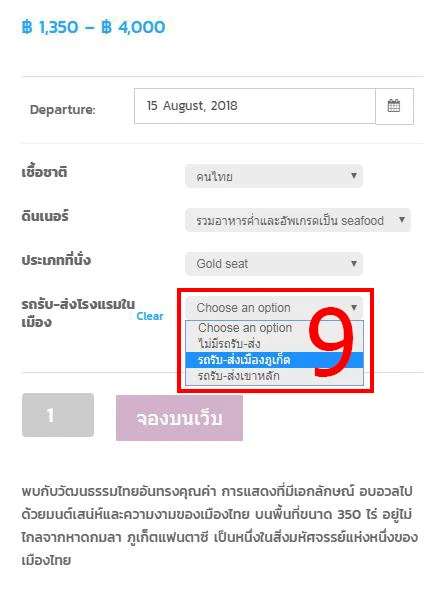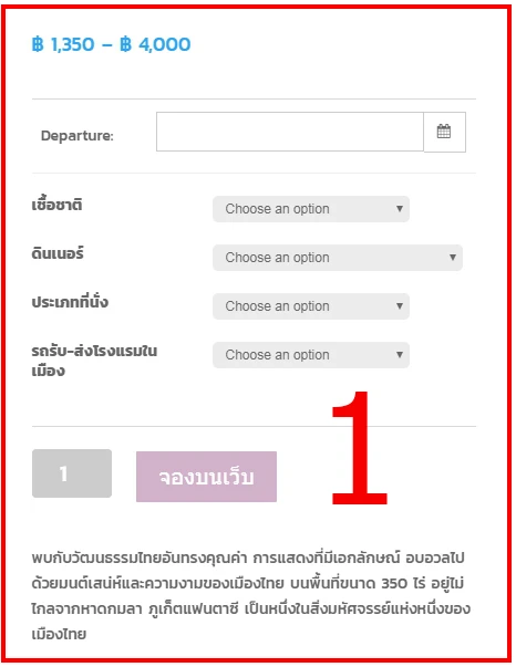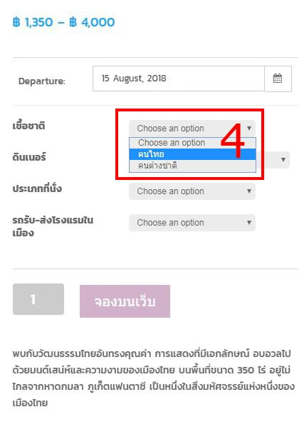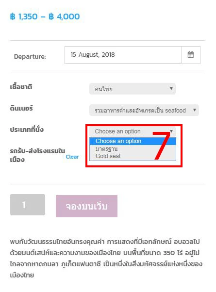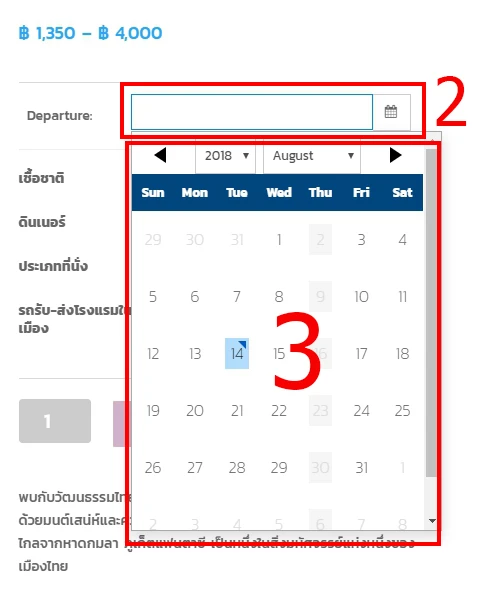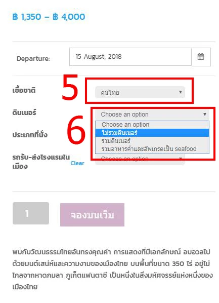2.จากนั้น ระบบจะโชว์ รายละเอียดสินค้า แล้วฟอร์มการสั่งซื้อให้ท่านกรอกเลือกวันที่ที่ต้องการจะจอง